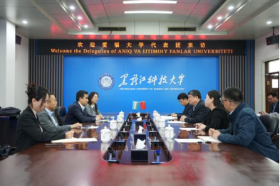孟上九代表学校对来访客人表示热烈欢迎。他详细介绍了我校的办学特色及国际合作的开展情况。他指出,乌兹别克斯坦作为“一带一路”沿线重要国家,矿产资源丰富,与我校相关学科领域具有广阔的合作空间。希望以此次访问为契机,进一步增进两校相互了解,为未来深化合作奠定坚实基础。约夫科切夫·沙赫佐德对我校的热情接待表示感谢,并介绍了爱福大学的办学历史、专业学科设置及对外合作交流情况。他强调,该校高度重视跨学科创新,未来将持续拓展国际教育科技合作网络,期待能够与我校开展多领域、深层次的务实合作。